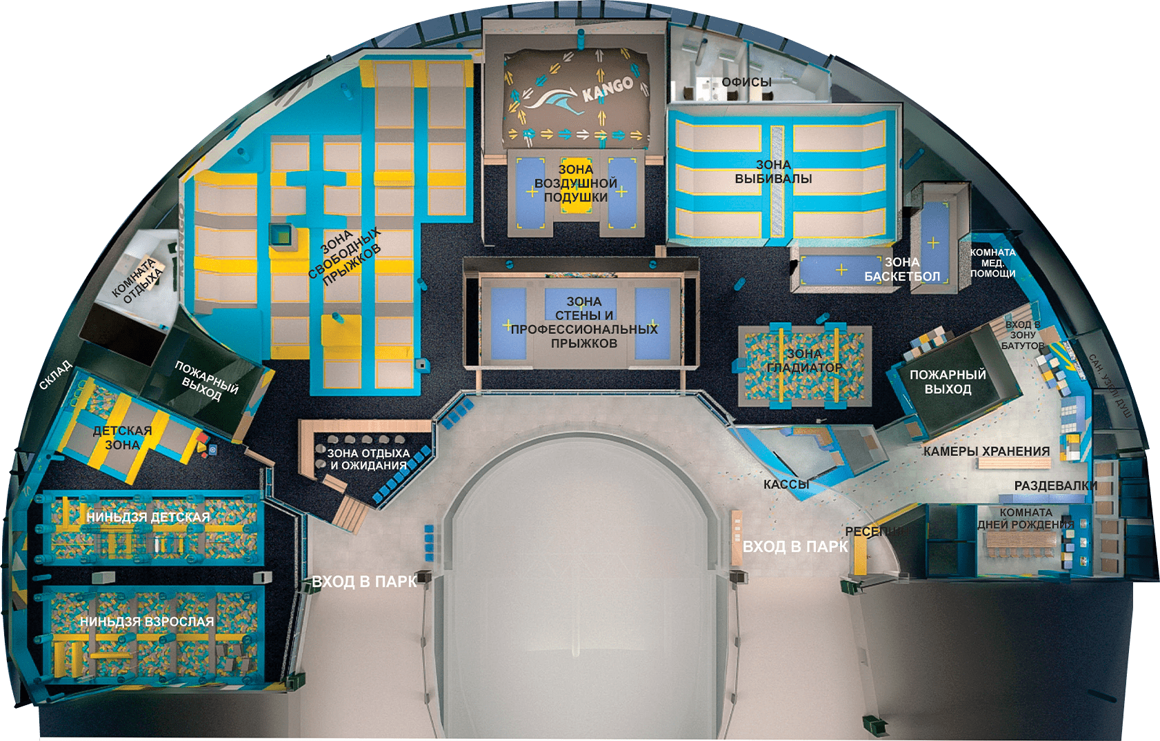 KANGO - батут саябағы ғана емес. Бұл барлық жастағы адамдар үшін белсенді ойын-сауық. Бізде сіз әртүрлі аттракциондарды таба аласыз-отбасыңызбен және достарыңызбен тәуелсіз және топтық секіруге арналған көптеген батуттар, трюктерді жаттықтыруға арналған ең үлкен ауа жастығы, тартылған итарқа бойымен жүре аласыз, гладиаторлық жекпе-жектерге қатыса аласыз және қарсыласыңызды доджбол командалық ойынында доппен ұра аласыз!